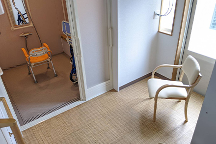 一般的なお風呂への出入りが不安な方でも安心して入浴していただけるようリフト浴も準備しています。